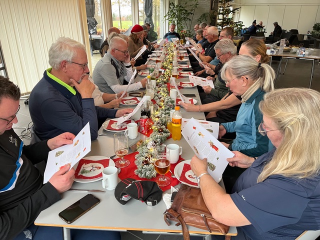 En sjov og hyggelig dag med julesang, underholdning, lækker mad og oplagte deltagere efter golfrunden i næsten fuld sol og 10 graders varme.